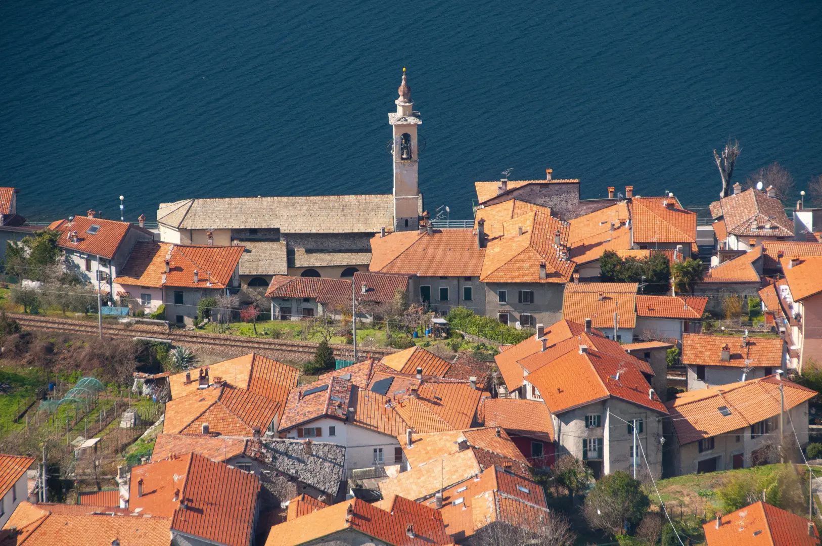 L’assetto insediativo comprende il nucleo principale affacciato sul lago e diverse frazioni collinari e montane, tra cui Somana e Rongio, collegate da viabilità interna e da una rete di antiche mulattiere. Il litorale alterna tratti urbanizzati a spiagge di ciottoli e piccoli porti, mentre l’entroterra conserva edifici religiosi e nuclei storici.