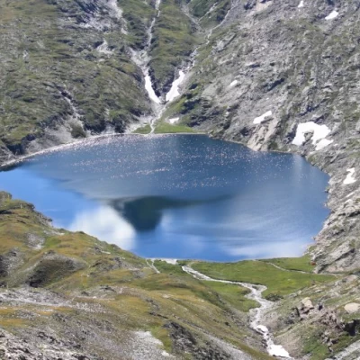 Laghetto posto in una piccola conca, crocevia di tre percorsi.Vie d'accesso:1) Dalla capanna Bovarina: salita diretta al lago Retico.