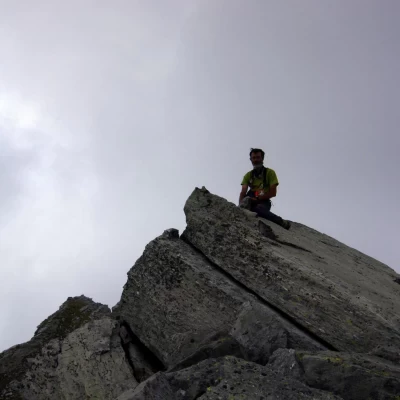 Dal piazzale di parcheggio 1560m si prosegue sulla pista forestale sbarrata (accesso consentito ai soli consorziati) e la si segue fin quasi al secondo - doppio - ponte (è possibile ed utile usare una scorciatoia sulla destra poco oltre un primo ponte). Alla sinistra della curva che precede i due ponti, una palina ("Valle della Sancia" e "Biv. Ca' Bianca") indica il sentiero da seguire: in breve si raggiungono le soprastanti baite di Morone 1860m e già si individua il proseguimento dell'itinerario. Dalle costruzioni si sale ad una sconnessa mulattiera che taglia il pendio di ontani e rododendri e si porta all'inizio del vastissimo ripiano superiore della valle della Sancia; mantenendosi sul bordo sinistro della valletta percorsa dal torrente, si raggiungono le costruzioni della presa d'acqua della condotta idroelettrica di Campodolcino. Si scende a guadare facilmente il largo corso d'acqua e, sull'altra riva, si ricerca un masso con indicazioni a vernice (nei pressi un picchetto verniciato bianco/rosso): si sceglie la direzione di sinistra e si percorre lungamente il pascolo sassoso del fondovalle. Iniziata le vera salita, fra dossi e vallette, si va ad avvicinarsi al Passo della Sancia 2580m, che si raggiunge da un poco in alto a sinistra: qui iniziano le segnalazioni svizzere e - soprattutto - un inedito sentiero alpinistico (segnali bianco/blu/bianco, senza traccia) in attraversata lungo questo tratto di confine. Si seguono questi segnali verso sinistra finchè, in alto a destra sulla cresta, non risulti visibile un traliccio di legno di una vecchia teleferica: si lasciano i segni e si sale a vista fin sul crinale, dove si raggiungono i resti di una cava 2750m. Resiste al tempo ancora una piccola costruzione aperta, solo per emergenza. Ormai sulla cresta - qui ancora molto ampia - si risalgono faticosamente gli accumuli di blocchi a monte della ex-cava, facendo attenzione ad evitare ampie spaccature del terreno - simili a crepacci ed altrettanto infide -. Scegliendo i passaggi più comodi, si mira ad una sorta di torre di massi impilati che si raggiunge da destra lungo un canalino verticale. A questo punto si è raggiunto il lungo crinale di vetta della Cima di Verchenca 2872m: oltre una curiosa spaccatura verticale a forma di trincea si scala una breve paretina (II) che porta al lastrone culminante.