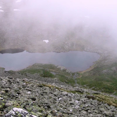 Ridiscendo questa volta per sentiero sino al L. Moro anche per prendere un pò di acqua, ritorno al passo di val Cervia e da li percorrendo la bella cresta sud del M. Toro segnata con frecce bianche, arrivo in vetta anche qui nelle nebbie.