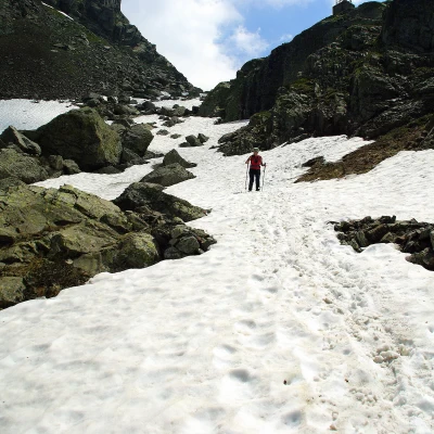 Il breve trekking ripercorre le tracce degli antichi percorsi della transumanza stagionale che conducevano le mandrie dal fondovalle valtellinese ai maggenghi e ai pascoli d'alta quota a cavallo fra la Valgerola (SO) e la Valvarrone (LC). Tuttora il latte munto a mano in loco viene usato per produrre il pregiato formaggio Bitto: poche forme al giorno per poche settimane all'anno. Già venduto prima di essere prodotto! Il sentiero, fino a Gerola Alta, solo in pochi tratti mantiene l'aspetto e la struttura originali, ma riesce a seguire un tracciato - nonostante l'obbligata esigua distanza dalla provinciale - isolato e sufficientemente rappresentativo dell'ambiente originale. La zona degli alti pascoli è stata sottoposta a pesante sfruttamento idroelettrico, ma ormai i numerosi laghi artificiali fanno parte del paesaggio. Si trovano anche tracce di scavi minerari attivi dall'epoca romana al tardo medioevo e rovine delle strutture miltari della Linea Cadorna. Il percorso è effettuabile con comodo in 2 -3 giorni (ritorno con autolinea) oppure con tre gite separate (due passeggiate di difficoltà T ed una escursione EE): nella descrizione vengono evidenziati - quando possibile - percorsi ad anello per le gite singole.