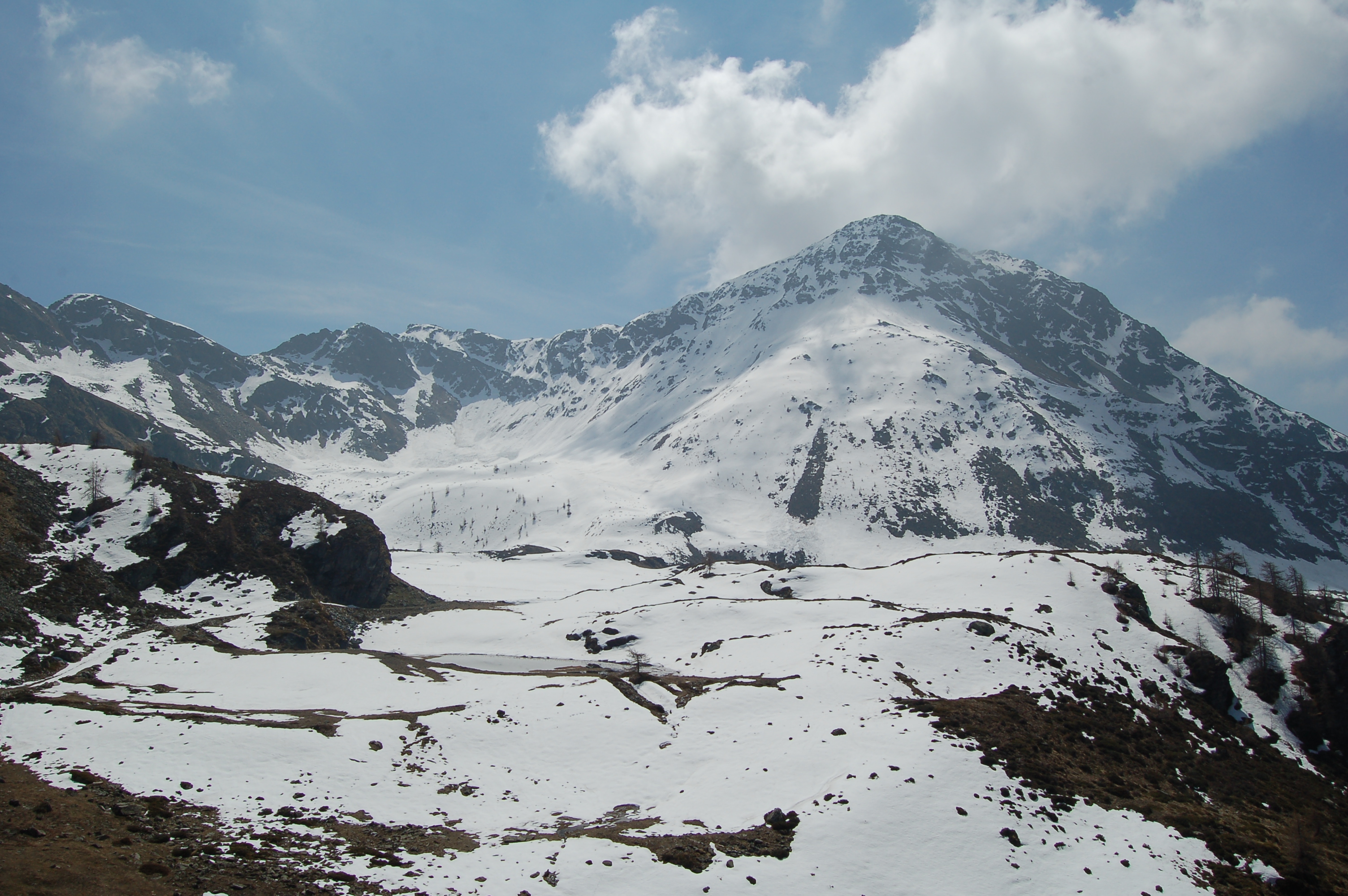 0h05' 15m Seguire il sentiero che dopo aver costeggiato un caseggiato risale il versante tra i pascoli intervallati da qualche macchia di bosco. Si prende agevolmente quota mentre si aprono piacevoli scorci panoramici sui sottostanti villaggi di La Magdeleine ed il non lontano Lago di Lod fino a raggiungere un bivio: tralasciare la traccia verso sinistra, che conduce alla strada comunale, e voltare a destra.
