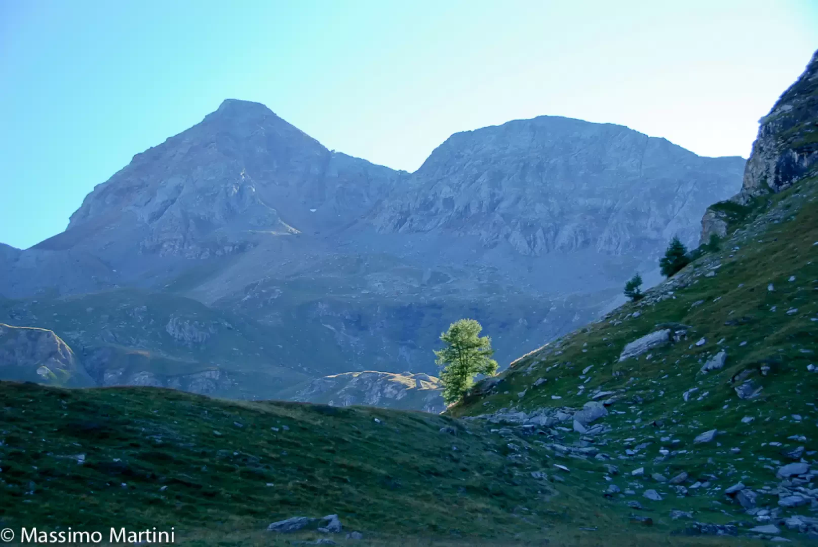 Imboccare il sentiero 30 che diparte a sinistra con una lunga diagonale ascendente tra radi larici e qualche ontano. Dopo aver attraversato la breve macchia boschiva il sentiero prosegue tra macchie di mirtillo e ginepro, risalendo senza eccessiva pendenza il versante.