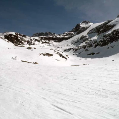Dal parcheggio si raggiunge la casettina situata all’inizio della pista di fondo e si seguono le segnalazioni per l’itinerario pedonale che costeggia l’area del campeggio estivo e prosegue rimanendo alla destra del torrente. Inoltrandosi nel vallone si raggiunge un ponte sulla sinistra che bisogna attraversare ed si inizia a salire per il tracciato del sentiero che conduce al rifugio Vittorio Emanuele seguendo le tracce scialpinistiche quasi sempre presenti. Dopo aver compiuto un tratto di salita nel rado bosco si arriva ad una quota di 2170 m circa dove si devono percorrere alcuni tornanti che attraversano un lungo e ripido canale e dove bisogna prestare la massima attenzione per la loro esposizione. Superato questo tratto si continua più facilmente la salita su dolci pendii più aperti che, a seconda dell’innevamento, alterna tratti su terra ai vasti nevai in fase di scioglimento: la traccia invernale di solito passa un po’ a sinistra di quella percorsa dal sentiero estivo e comunque rimanendo al centro delle morene si raggiunge senza difficoltà il rifugio Vittorio Emanuele.