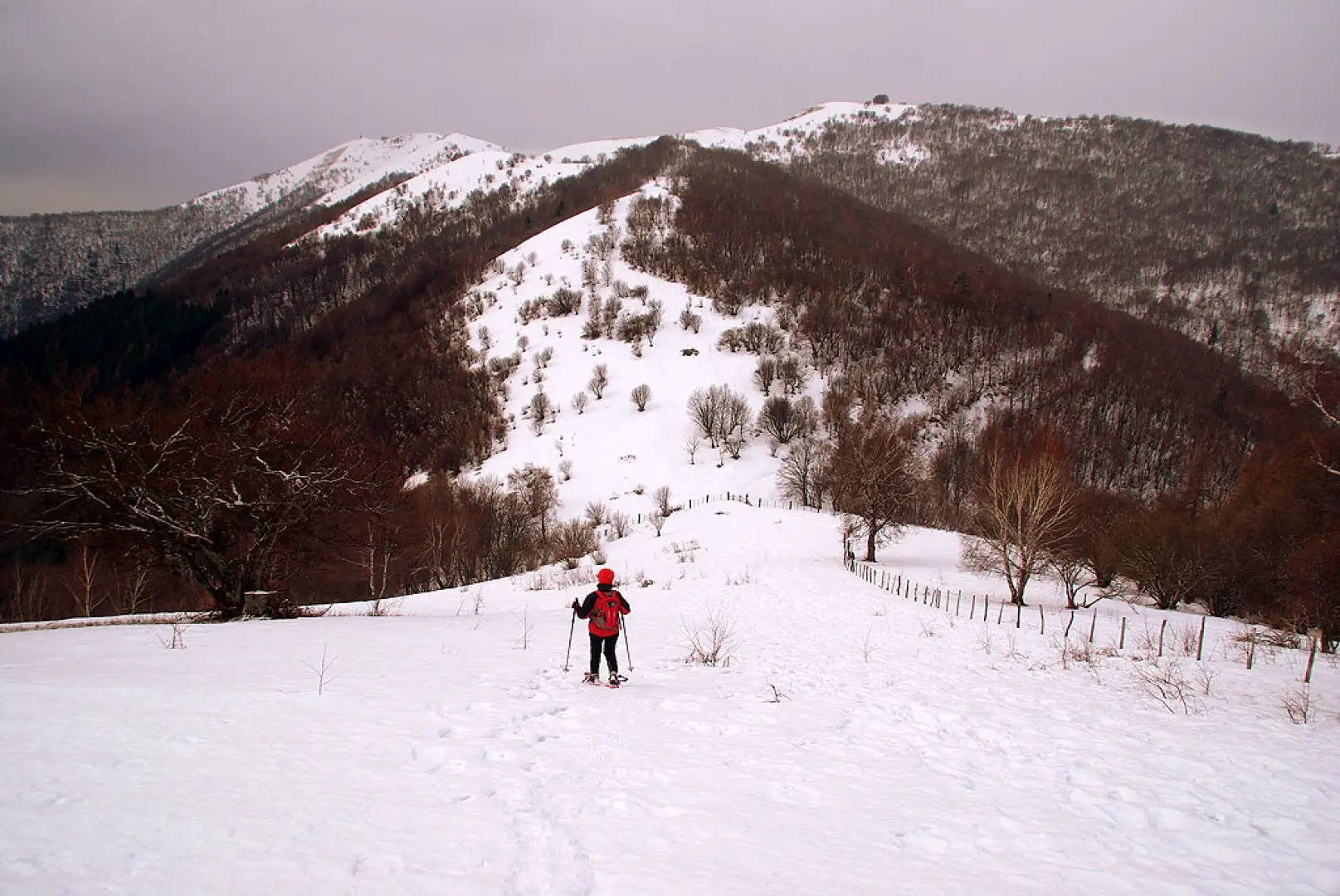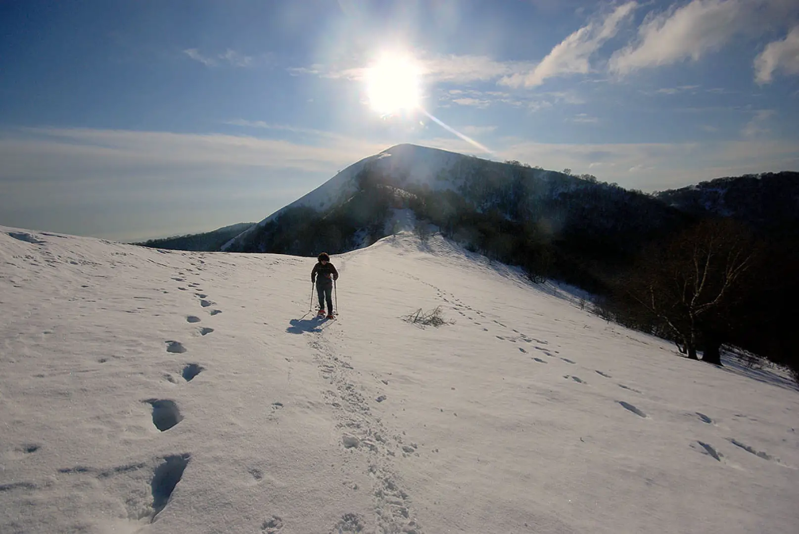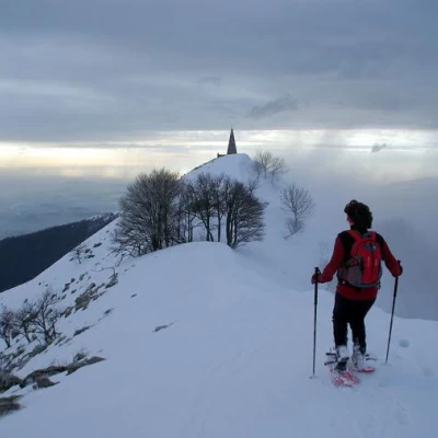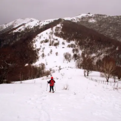 Gita lombarda molto conosciuta soprattutto in veste non innevata. Bellissima con molta neve fresca (i pendii, ripidissimi, scaricano subito) e cielo sereno: i panorami si spingono fino al Monviso. Il percorso completo del filo del crinale ci obbliga ad un saliscendi continuo, con salite anche intense. Il tragitto del ritorno si svolge parallelamente al crinale seguendo un mezzacosta fra radi faggi su traccia sempre battuta.