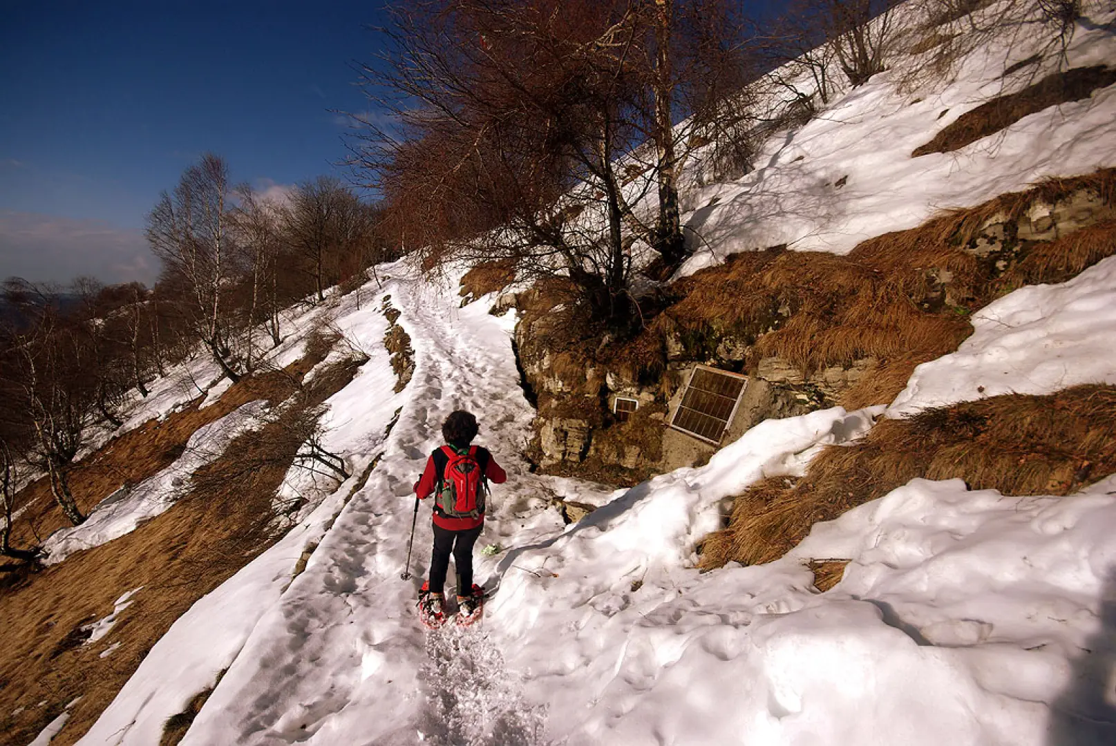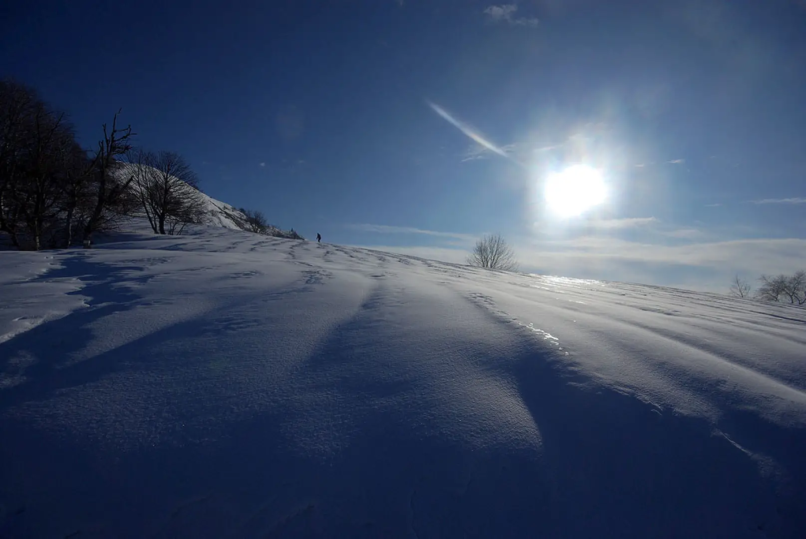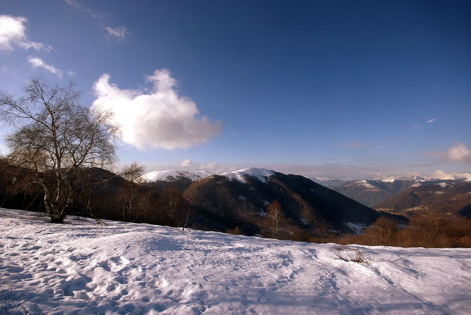 Gita lombarda molto conosciuta soprattutto in veste non innevata. Bellissima con molta neve fresca (i pendii, ripidissimi, scaricano subito) e cielo sereno: i panorami si spingono fino al Monviso. Il percorso completo del filo del crinale ci obbliga ad un saliscendi continuo, con salite anche intense. Il tragitto del ritorno si svolge parallelamente al crinale seguendo un mezzacosta fra radi faggi su traccia sempre battuta.