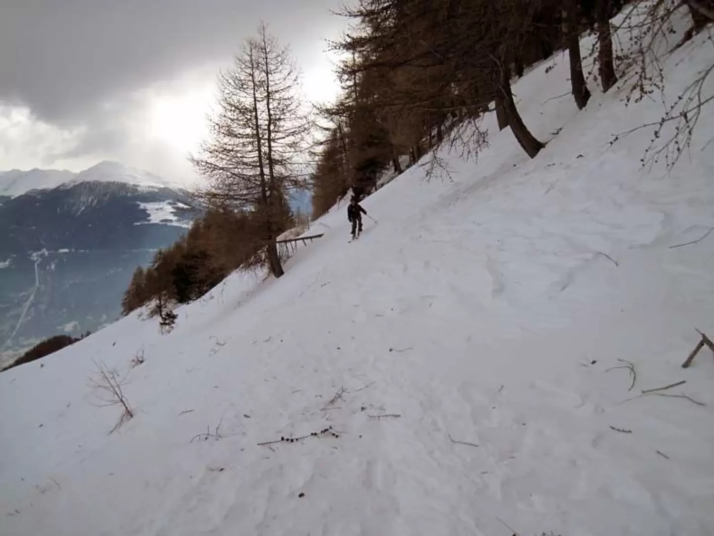 Lunga escursione (oltre 15 km tra salita e discesa) con la quale si risale il vallone di Verrogne in tutta la sua interezza passando tra numerosi dossi e da un bel rifugio in fase di ultimazione; raggiunto poi il colle il panorama è veramente bello sia sul vallone di salita sia sul versante opposto dove si trova il vallone del Mont Flassin e, più a nord, le cime del comprensorio della zona del Gran San Bernardo. Le difficoltà si possono incontrare nei traversi iniziali sulla stradina e nella risalita dell’ultimo ripido tratto verso il colle dove possono essere utili i coltelli anche in caso di pendio non ghiacciato. Al ritorno, a parte il primo ripido tratto, si cercano in seguito i pendii migliori tra i vari dossi per evitare di dover spingere in alcuni brevi tratti e, volendo prolungare un po’ la discesa, si può scendere ancora oltre la stradina dell’andata per prendere un’altra stradina che si trova anch’essa sulla destra. Da questa si contorna ancora la fiancata della montagna e, raggiunta la pista di fondo, si passa sotto un alpeggio e si raggiunge infine il boschetto dove si trova il parcheggio.